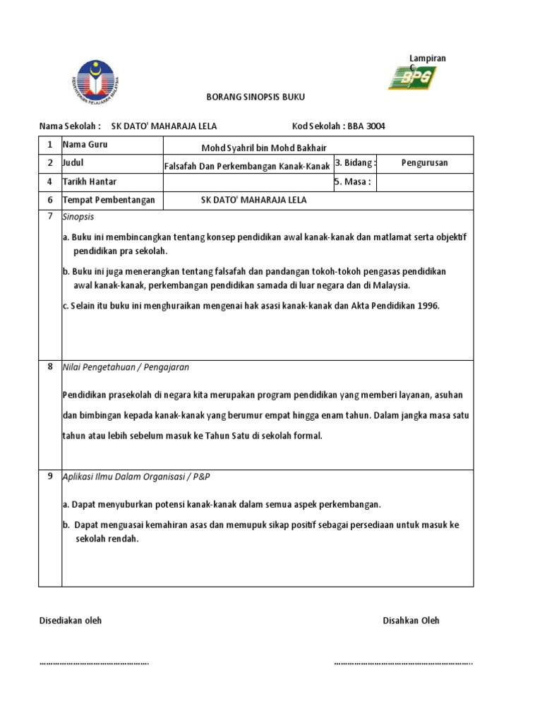 Tidak kira sama ada kita adalah pengurus, pentadbir mahupun pekerja sokongan, kita perlu beradab sesama sendiri. Borang sinopsis buku untuk guru. Setiap pembuatan sinopsis harus memiliki ciri. Kali ini, penulis akan mengulas salah satu buku karya buya hamka yang cukup fenomenal. Sinopsis novel adalah ringkasan atau rangkuman cerita.